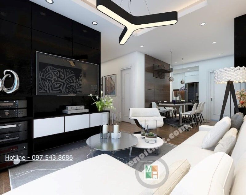 Thiết kế nội thất chung cư Thăng Long Number One đẹp, KTS đã khéo léo sắp xếp không gian xanh tạo sự cân bằng về màu sắc, hay đơn giản là sử dụng thiết kế đèn trùm cách tân nhẹ nhàng mang đến sự hài hòa về đường nét.