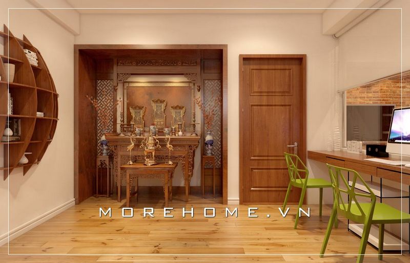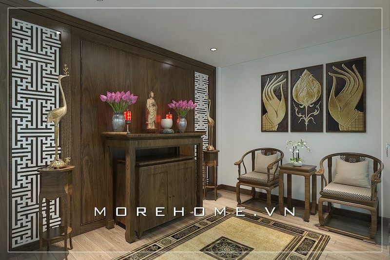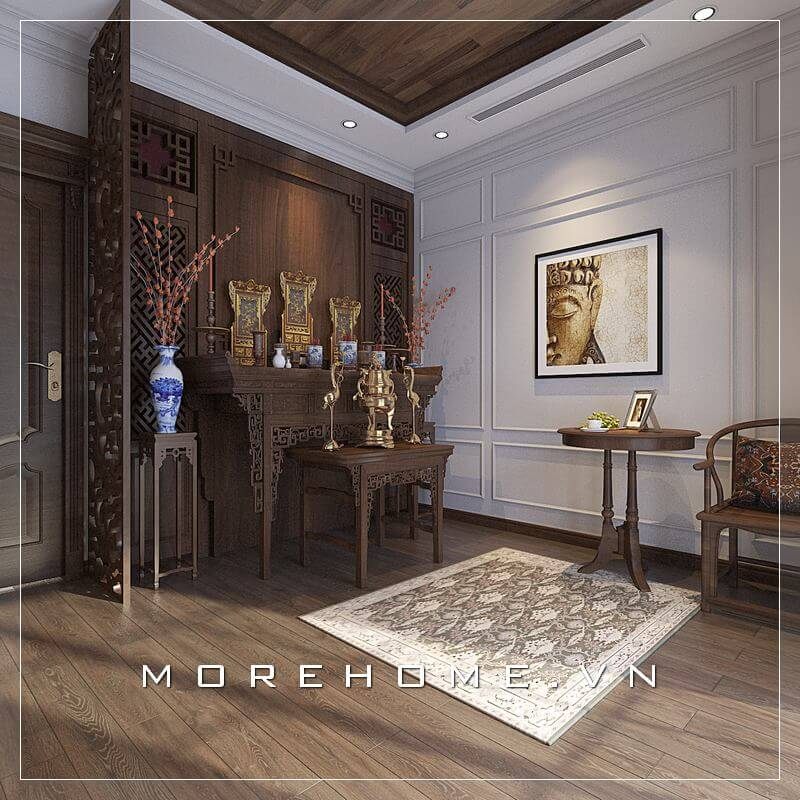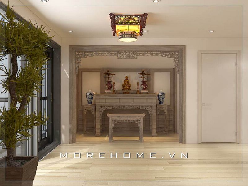 17 Hình thiết kế nội thất căn hộ có ban thờ gỗ tự nhiên đẹp chuẩn phong thủy