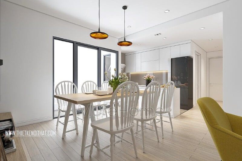 Mẫu thiết kế nội thất phòng ăn chung cư cao cấp với bộ bàn ghế ăn đơn giản nhỏ gọn