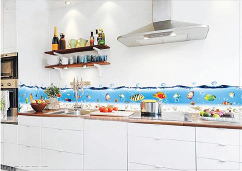 Do phòng bếp là nơi gia đình nấu ăn hàng ngày, có nhiều dầu mỡ bắn lên tường, cũng nhiều khói hơi bay ra từ nồi nấu đồ ăn, vì thế khi chọn tranh dán tường bạn nên chọn những loại được làm từ chất liệu lá nhôm mỏng, dễ lau chùi. Bạn cũng nên sử dụng các loại tranh dán tường chống dầu mỡ, được chế tạo từ những chất liệu cao cấp, có độ bền cao.