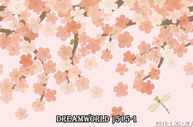 Giấy dán tường có hình ảnh cây hoa đào được tán trên bề mặt.