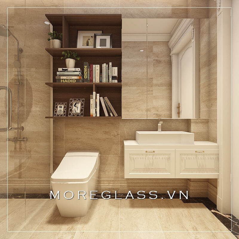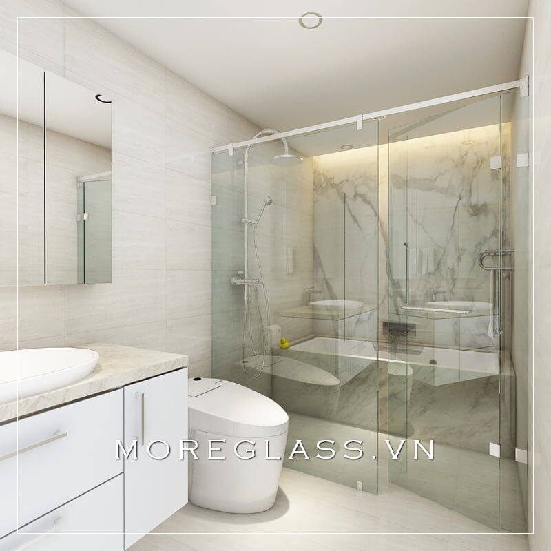 Mẫu thiết kế nhà tắm kính đẹp có vẻ đẹp tinh tế, sang trọng nhưng không làm cho phòng tắm nhỏ trở nên bí bách.