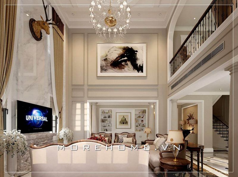 Morehome đã hoàn thành việc thi công hệ tủ gỗ trang trí nội thất cho phòng khách biệt thự 4 tầng ở Nghệ An.